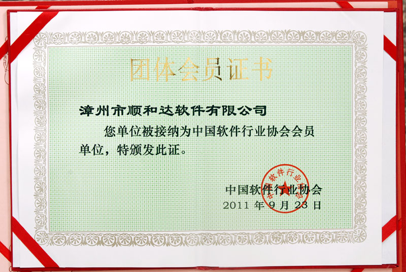 2011年,順和達(dá)被接納為“中國軟件行業(yè)協(xié)會”會員